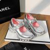 Silver lace-up small leather shoes women's thick heels and thick soles increase height Wasteland style personality derby shoes metal decoration supe