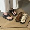 Fashion thick-soled toe sandals female summer 2025 new fairy wind soft-soled pinched feet student Roman beach shoes