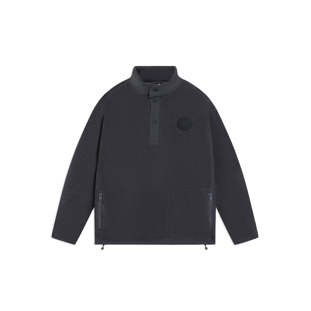 Li-Ning Sports Fashion Series Plus Velvet Warm Solid Color Half-Button Stand Collar Long Sleeve Jacket Unisex Jacket Haze-Gray AAES939-4