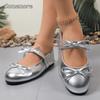 Fashion Silver Bowknot Decor Ballet Flats for Women Spring Summer Comfort Slip On Flat Shoes Woman Lightweight Soft Sole Mary Jane Shoes