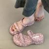 Slippers summer new silver round head with muffin platform beach sandals slope heel versatile sandals