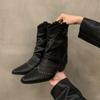Fashion 2025 New Women's Brown Western Cowboy Boots Sharp Pointed Toe Chunky Heel Ankle Booties for Autumn Winter Fashion Street Style