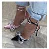 Fashion Designer Butterfly-knot Crystal Buckle Strap Women Pumps Street Style Elegant Thin High Heels Stripper Prom Shoes Zapatos Mujer