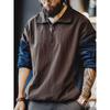 Madden Parka American Casual Half Zipped Stand Collar Stitching Long Sleeve T-shirt Lapel Pullover Solid Color Hoodie Men's Autumn