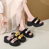 Retro thick-bottomed cool slippers wear summer new fashion bow one-word drag fairy wind cover toe Roman slippers girl