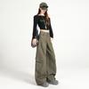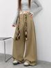 Washed cotton overalls women's autumn new high-waisted design lace-up retro drape wide-leg pants