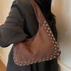Retro Suede Rivet Shoulder Bags PU Leather Work Purses Large Tote Handbag Slouchy Locomotive for Women Travel Winter Fall