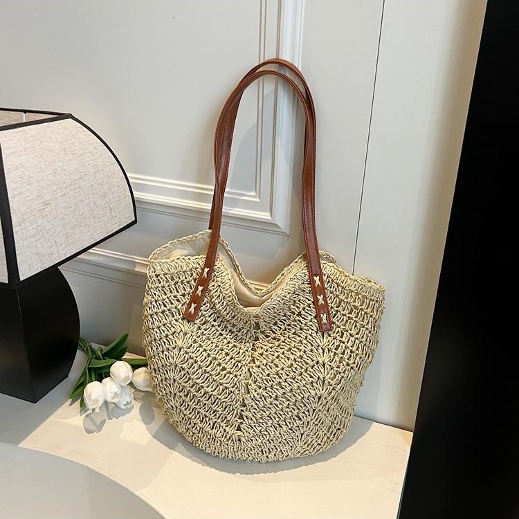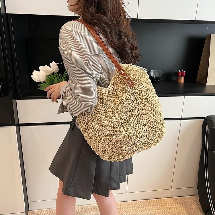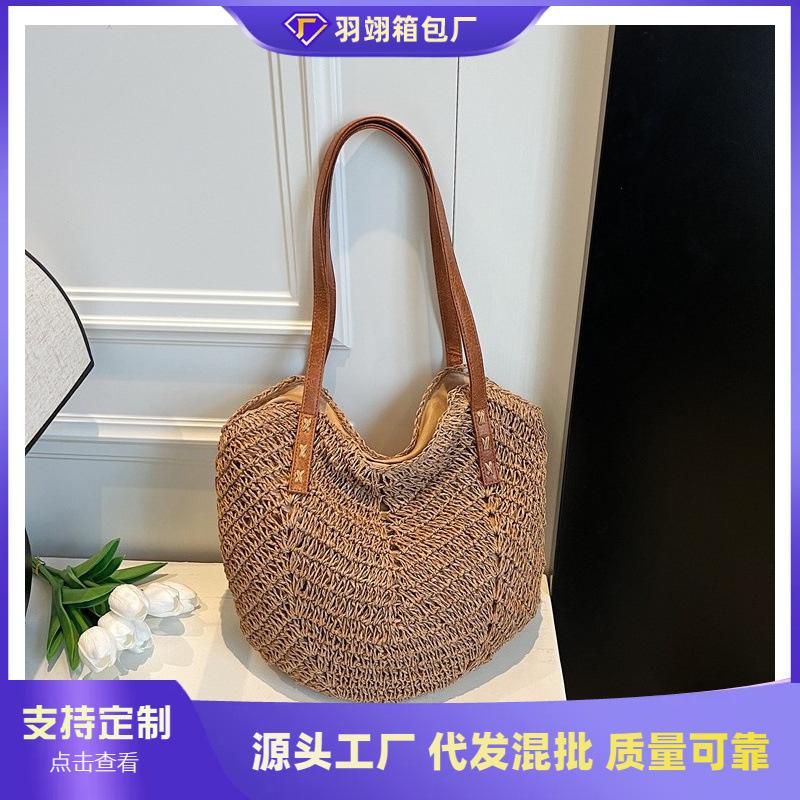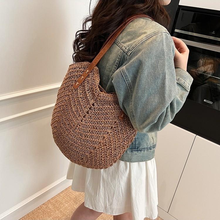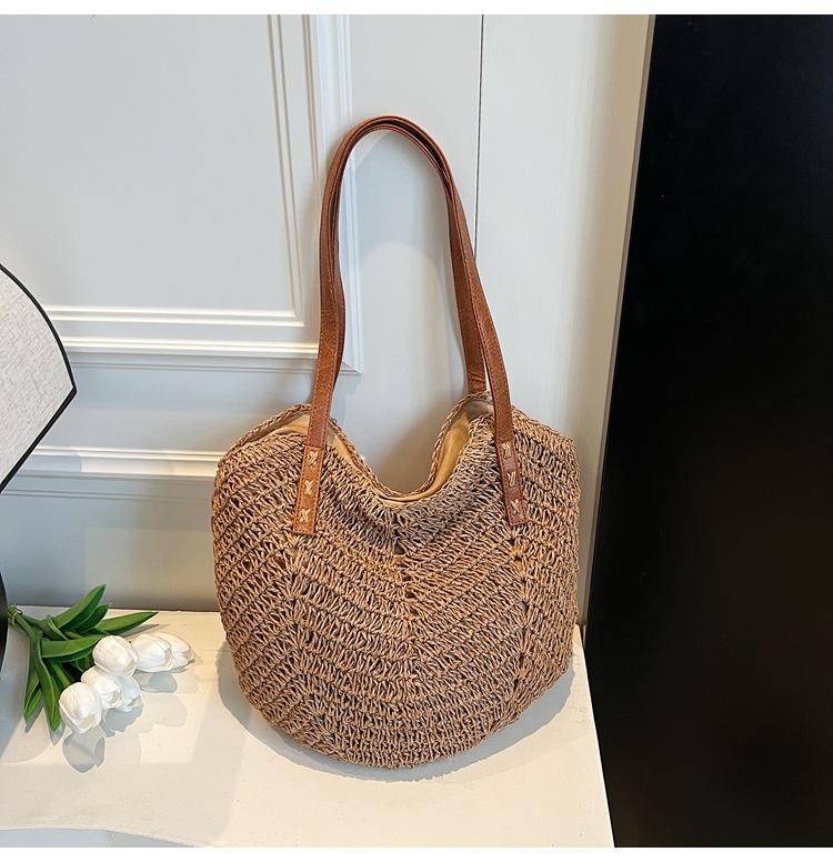 Large capacity woven bag women's new fashion commuter beach bag casual simple retro shoulder bag