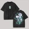 Harajuku Demon Slayer Tshirt Kokushibo Manga T Shirt Washed Cotton T-shirt For Men Women Clothing Short Sleeves Tees Tops