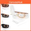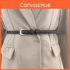 This women's belt features a slim design crafted from durable PU leather, measuring 105 cm in length with a width 1.8cm. The alloy buckle with a smooth closure ensures secure fastening, adding a sleek touch to various outfits. Ideal for casual, office, or everyday wear, it complements jeans, dresses, or skirts. Wipe clean with a damp cloth for maintenance.