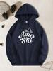 Men's Ski Backcountry Map and Letter Print Hooded Sweatshirt - Geometric Design, Regular Fit Winter Sports Casual Pullover