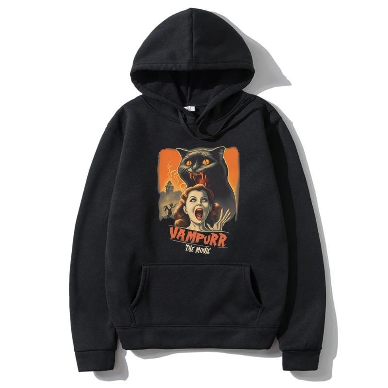 Cat Pattern Hoodie Horror Halloween Printed Hoodie Men's Wool New Hoodie Retro Hoodie Men's Sportswear