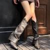 Cowhide version~ retro pointed riveted trouser tube boots versatile western cowboy boots thick heel side zipper boots women