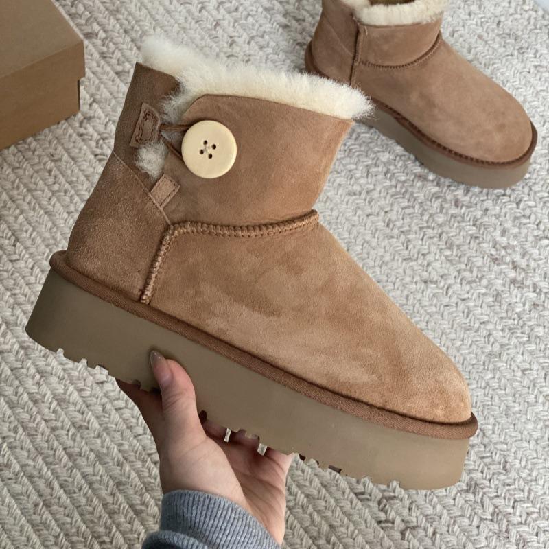 Winter new fur integrated wooden buckle short tube thick-soled warm cotton shoes women's one-buckle wool snow boots