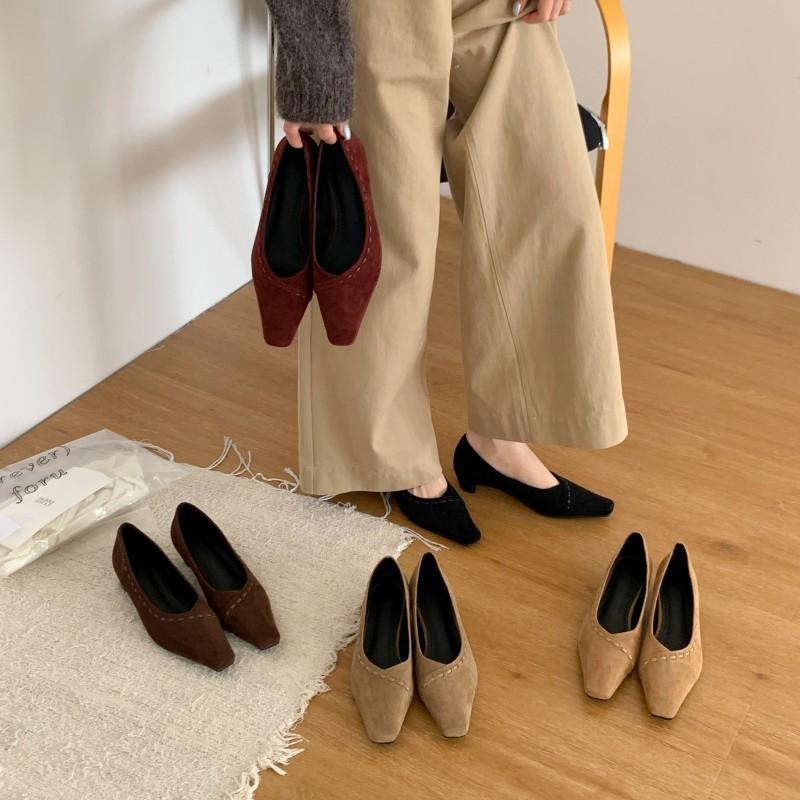 Coarse heel single shoes female versatile little fairy 2025 new shallow mouth small fragrant style work one pedal low heel Mary Jane shoes