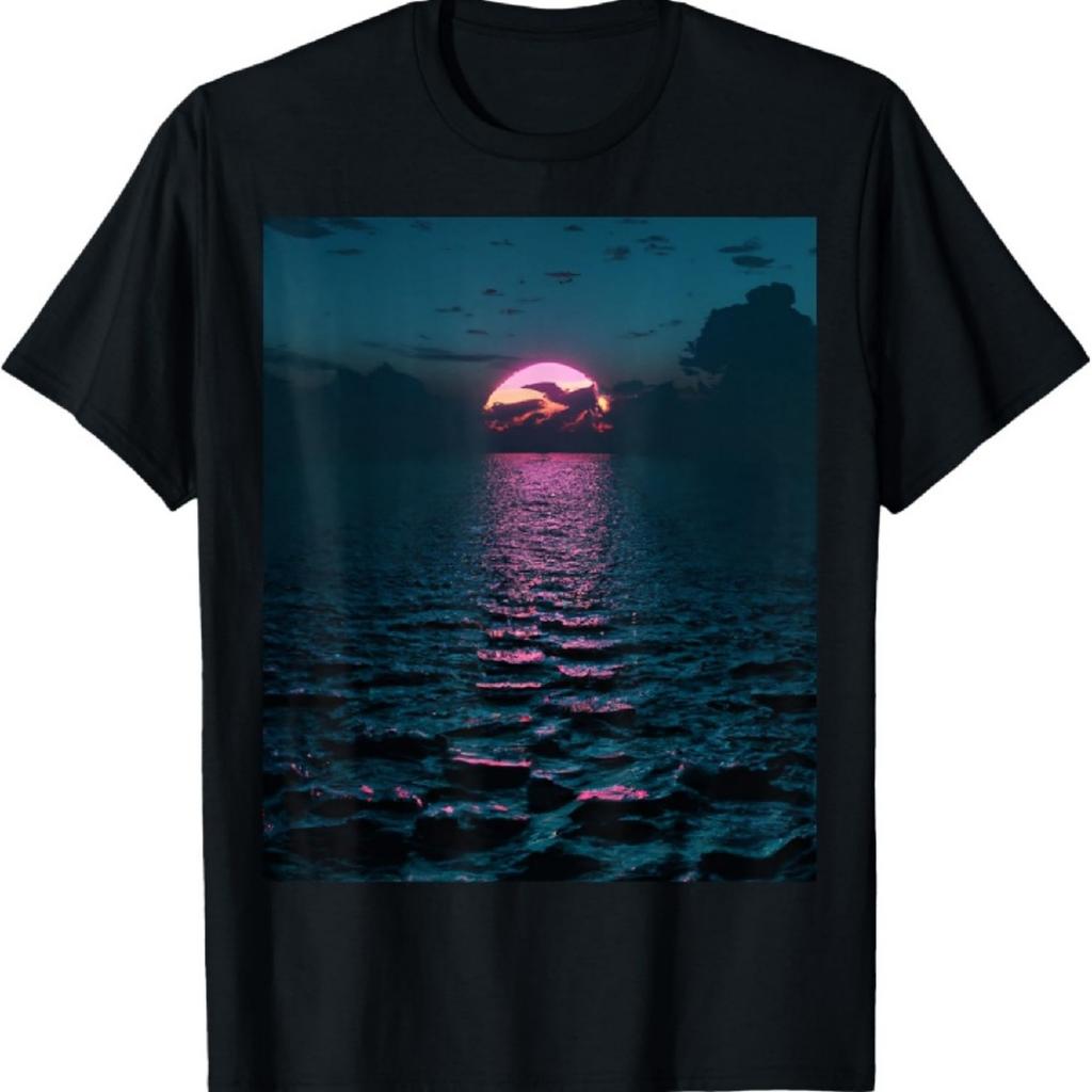 Vaporwave Aesthetic Sunset Above Dark Sea T-Shirt