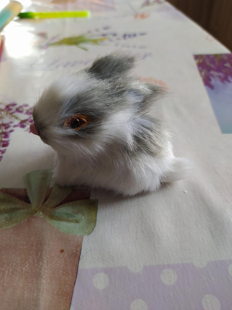 Iepurașul este drăguț, ochii sunt roșii ca cei adevărați. Fara miros. Blana artificială nu urcă.