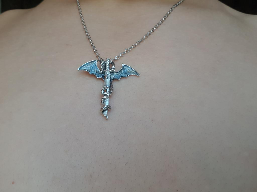 Vintage Glow In The Dark Lanț Shellhard Luminous Sword Dragon pandantiv Colier Bărbați Punk Bijuterii Accesorii
