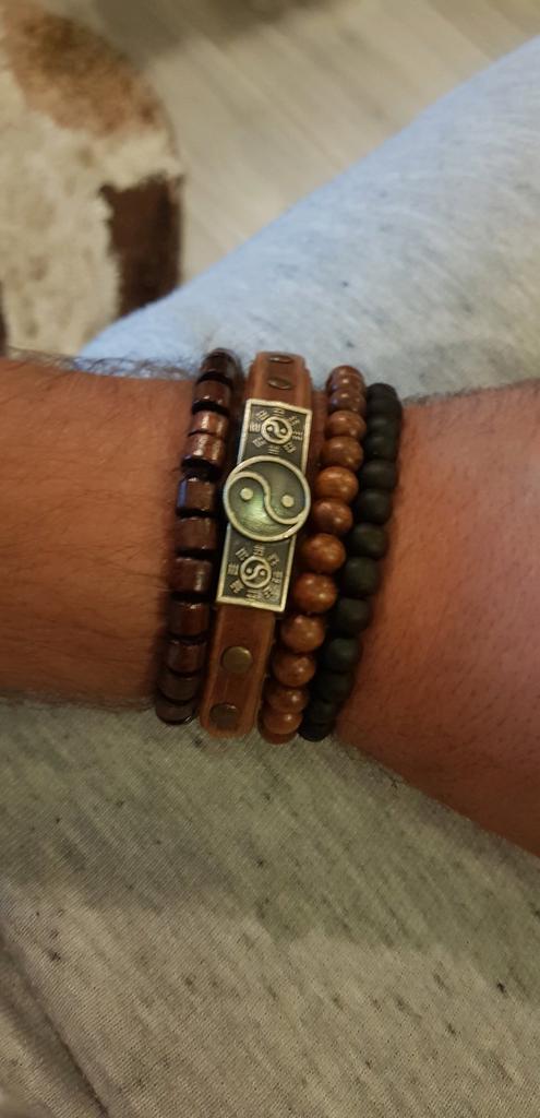 4 bucăți/set bărbați vintage cu mărgele din lemn, brățară din piele artificială, bijuterii cu frânghie reglabilă
