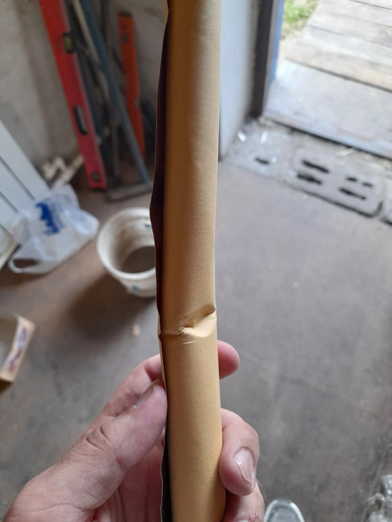 Nu știu cum o voi netezi. Pe măsură ce erau laminate special, acesta era îndoit, până și cilindrul din spumă de polistiren pe care era înfășurată cardul era îndoit