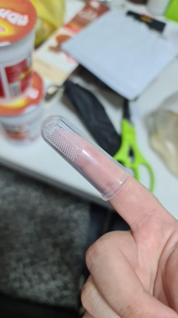 Produsul este o periuță de dinți din plastic care se potrivește pe deget pentru a curăța dinții câinelui tău, este de bună calitate, dar se potrivește doar pe degetul meu mic, dar cu siguranță își face treaba!👍