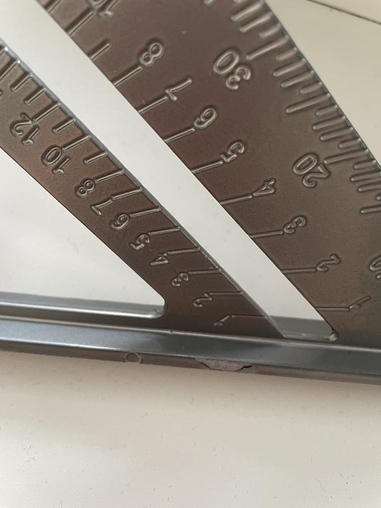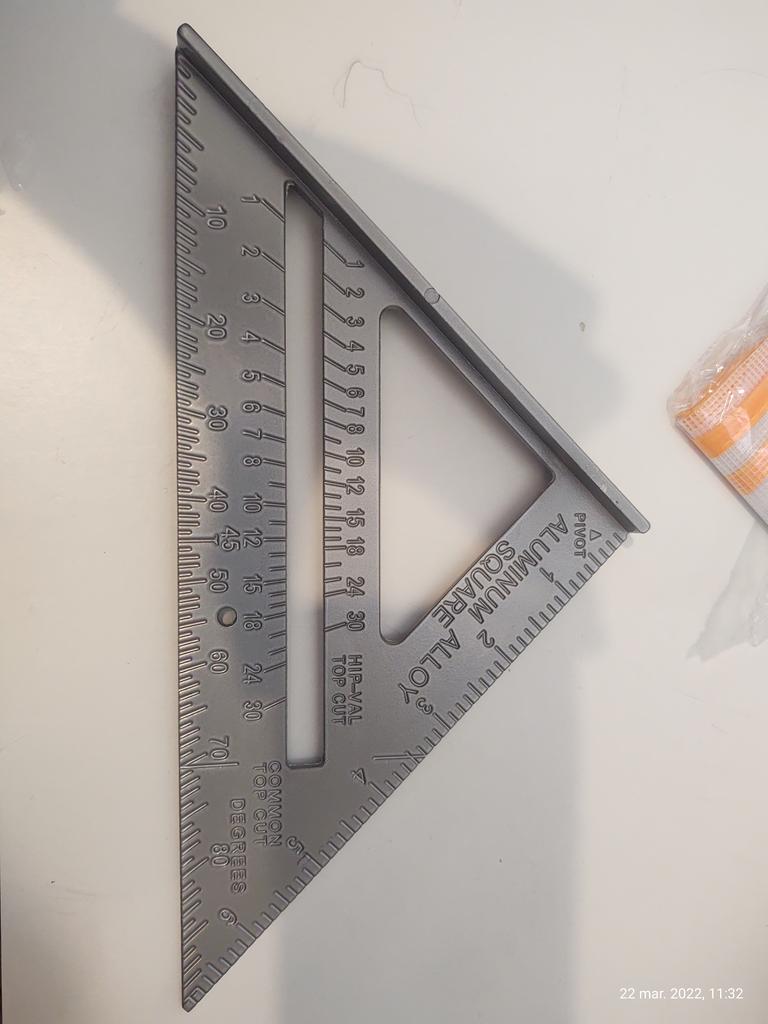 Riglă triunghiulară pătrată îngroșată pentru prelucrarea lemnului, care măsoară 45 de grade, instrument de predare