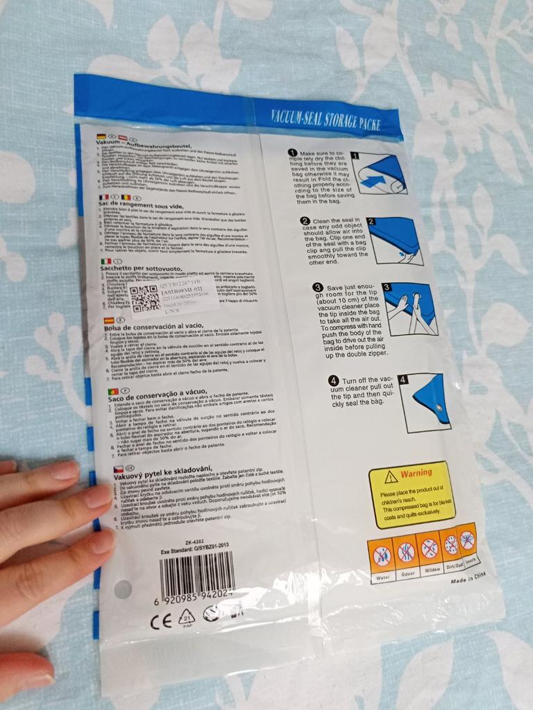 Oricine a călătorit cu multe haine sau mutări organizate știe cât de importanți sunt sacii de vid pentru transportul și depozitarea articolelor fără a ocupa prea mult spațiu. Cu toate acestea, nu în fiecare țară produsele sunt realizate cu material bun. Această geantă a depășit cu mult așteptările. Închiderea etanșă alunecă ușor și nu lasă zone deschise (exact problema cu majoritatea pungilor, lasând aerul să intre), firul de etanșare este sigur pentru a închide geanta și ușor de manevrat. Dimensiunea ceruta a fost 80x110, exact ce a fost livrat - dimensiune suficienta pentru aproape un dulap intreg.