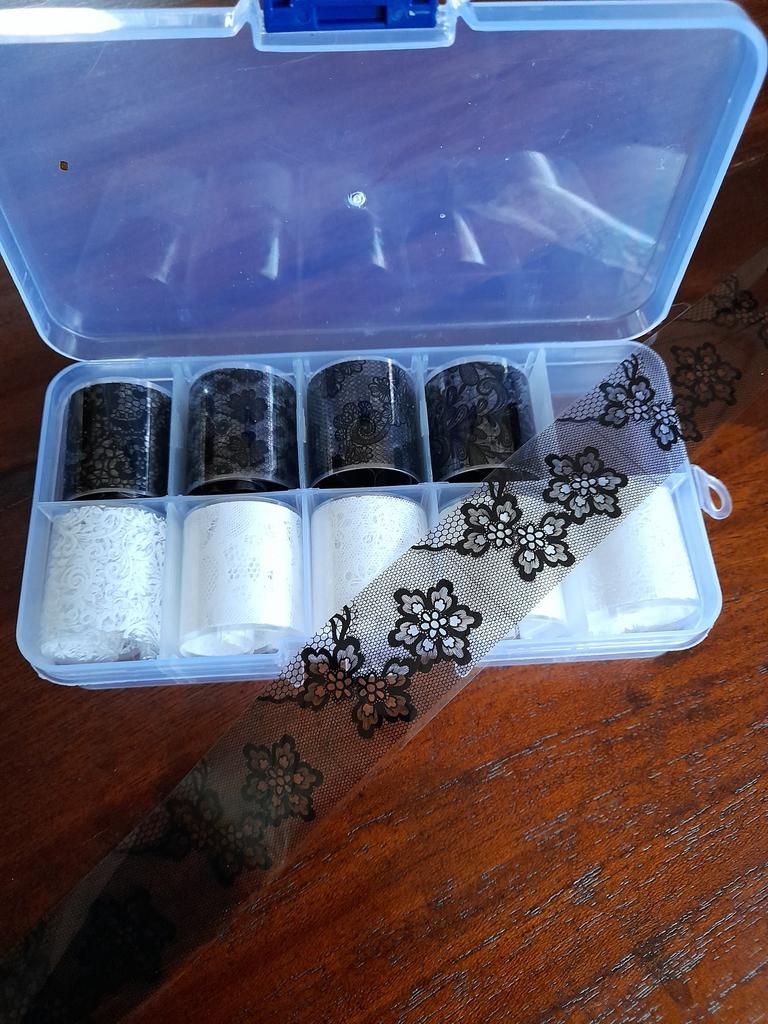 10 role 2,5*60 cm Nou Negru Alb Dantela Transfer Folie Nail Art Sexy Full Wraps Flori Lipici Adeziv DIY Manichiura Instrumente de styling