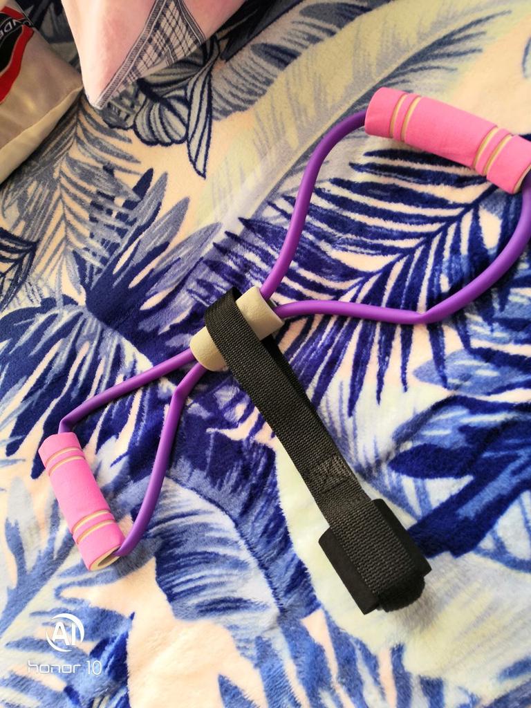 O bandă elastică îl ține - un expander. puternic Dar un pic scurt. Voi cumpăra și benzi de cauciuc de antrenament pentru el
