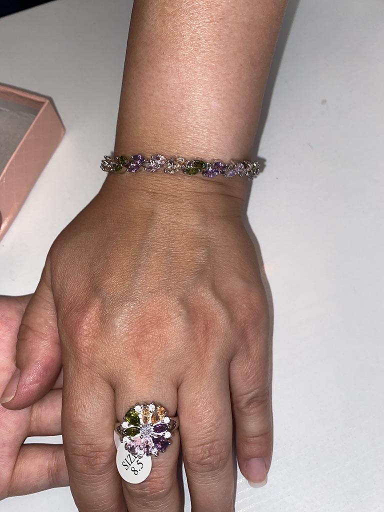 Nu argint, deși există o mostră. Dar produsele sunt îngrijite și au un aspect decent. Pietrele sunt toate la locul lor. Am comandat inelul #8, mărimea este fidelă mărimii, dar este mai bine să luați o mărime mai mare, deoarece #8 corespunde mai mult cu #7, este prea mic