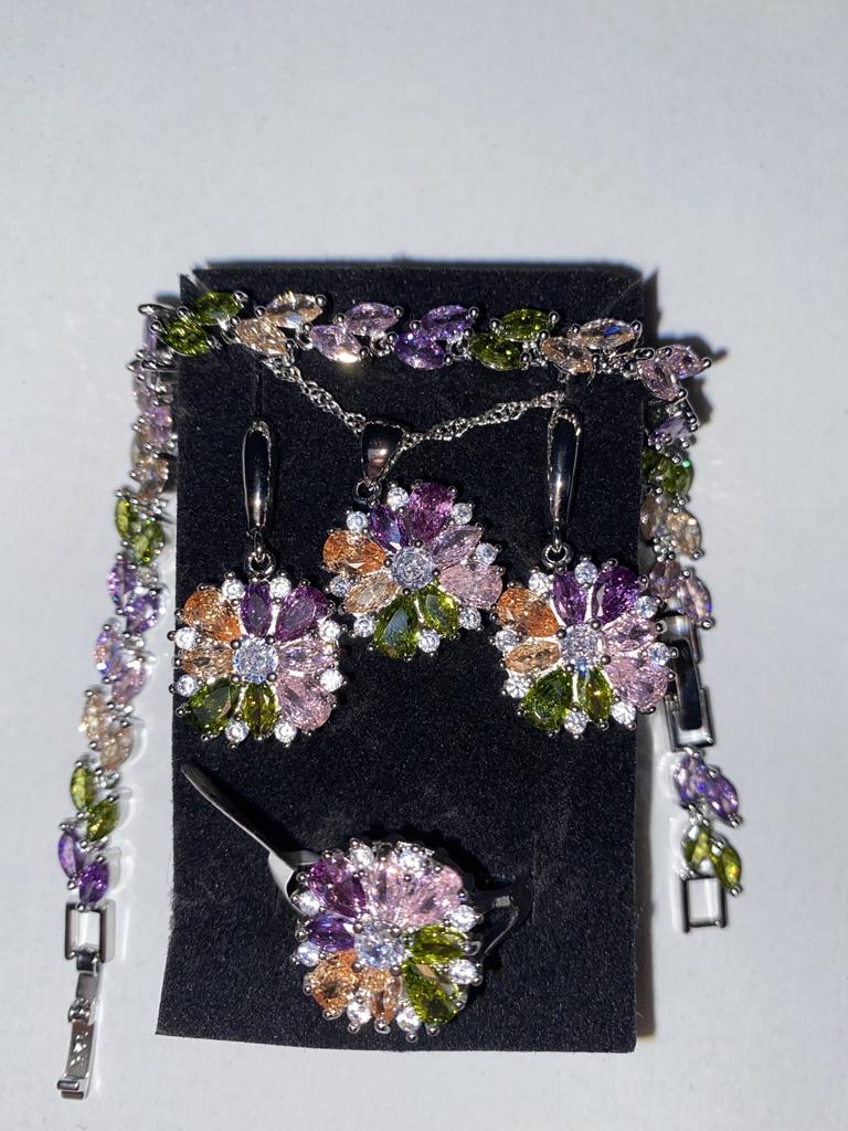 Bijuterii de culoare argintie Pietre multicolore Seturi de bijuterii cu zirconiu pentru femei Cercei Brățară