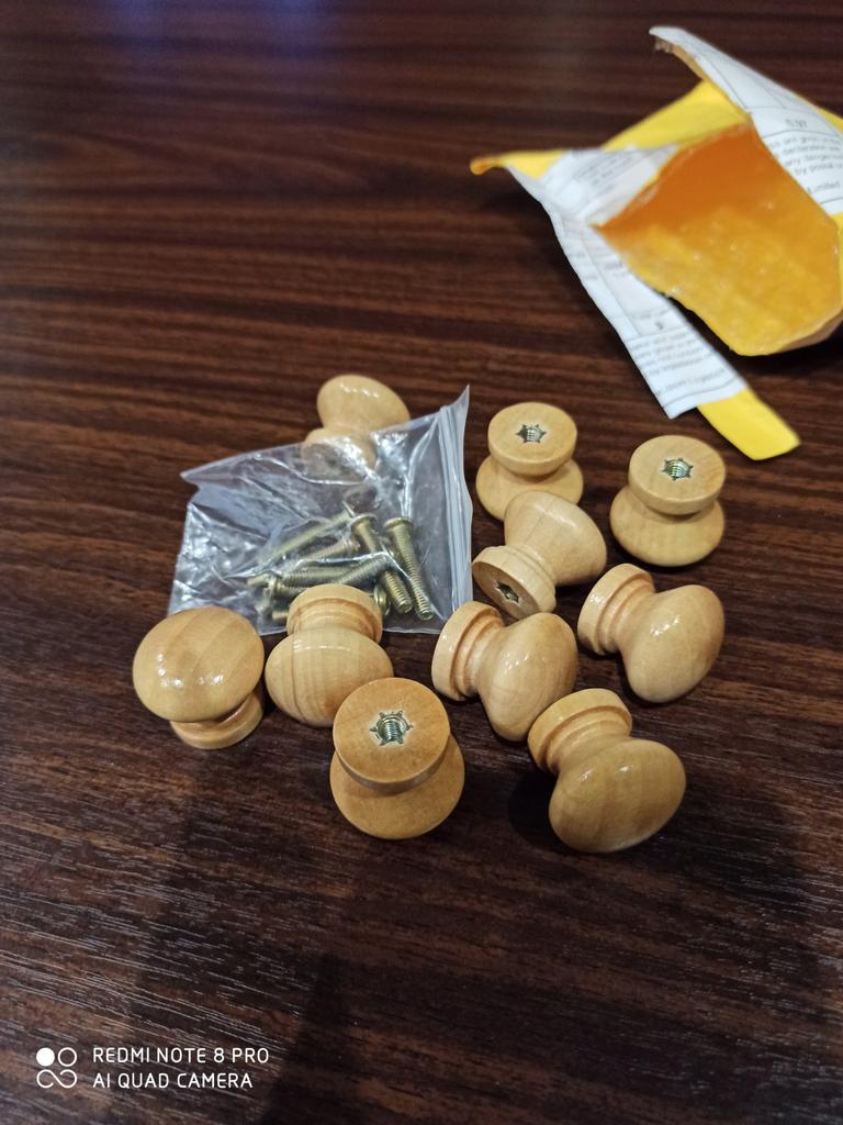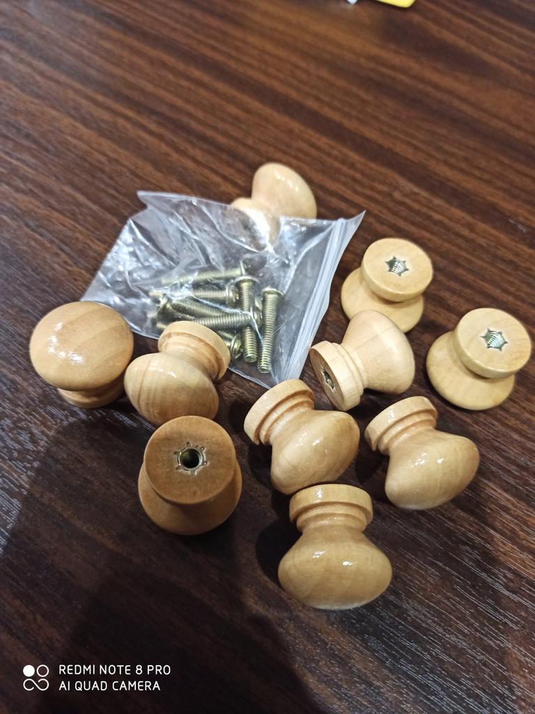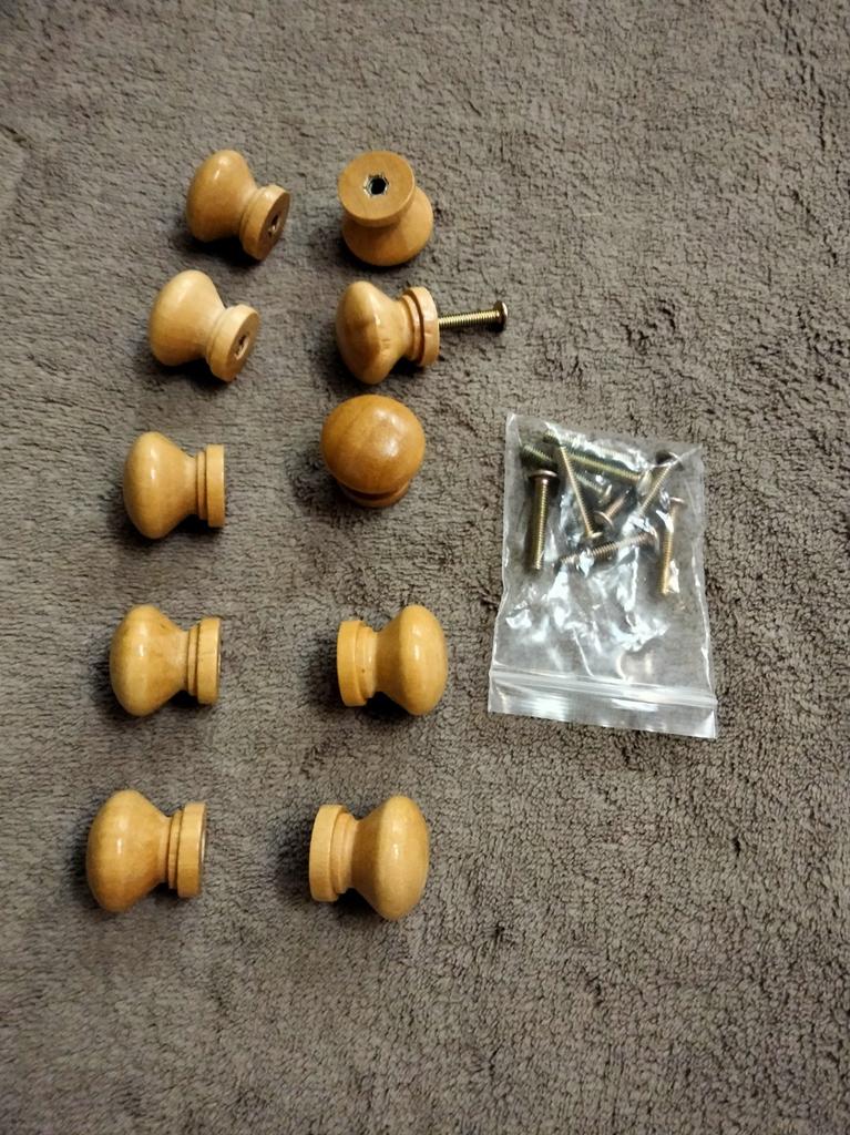 Mânerele mici din lemn sunt doar bune pentru dimensiunea lor în miniatură. Montarea cu piuliță încorporată este foarte bună! Lejer, strălucitor, exact ceea ce ai nevoie.
