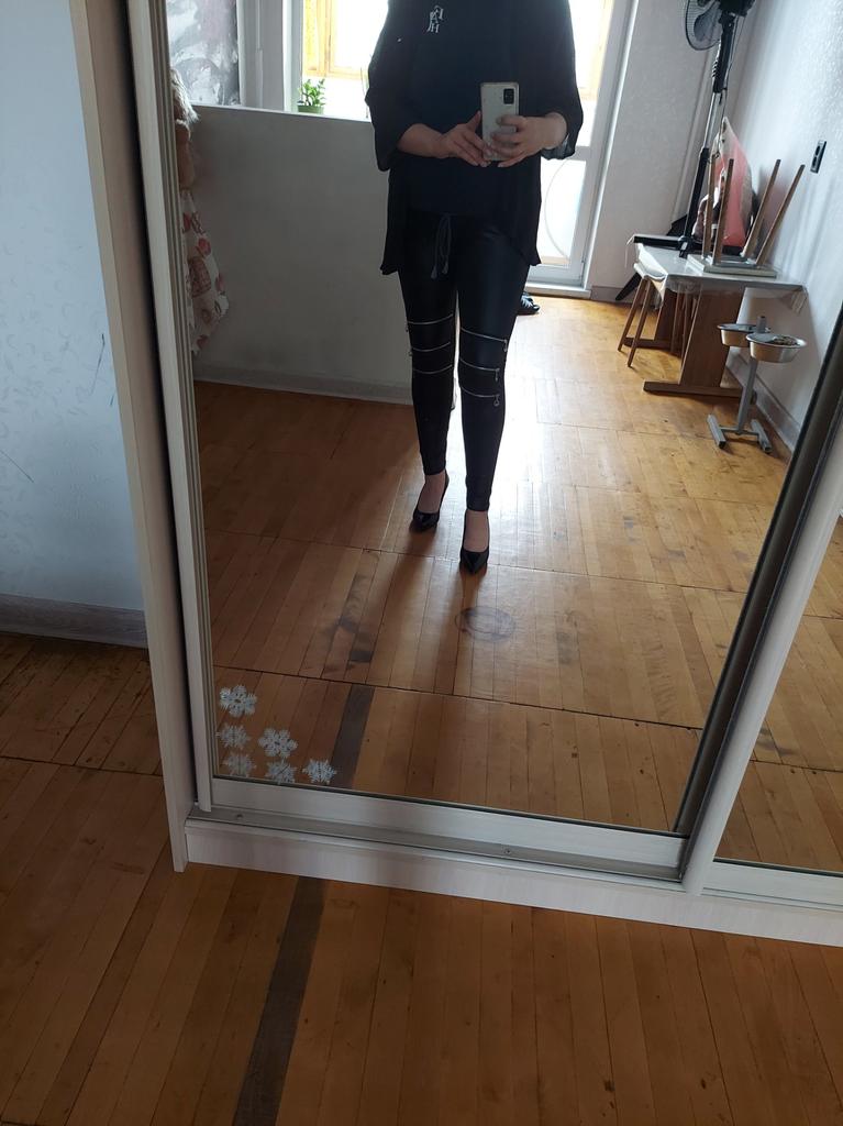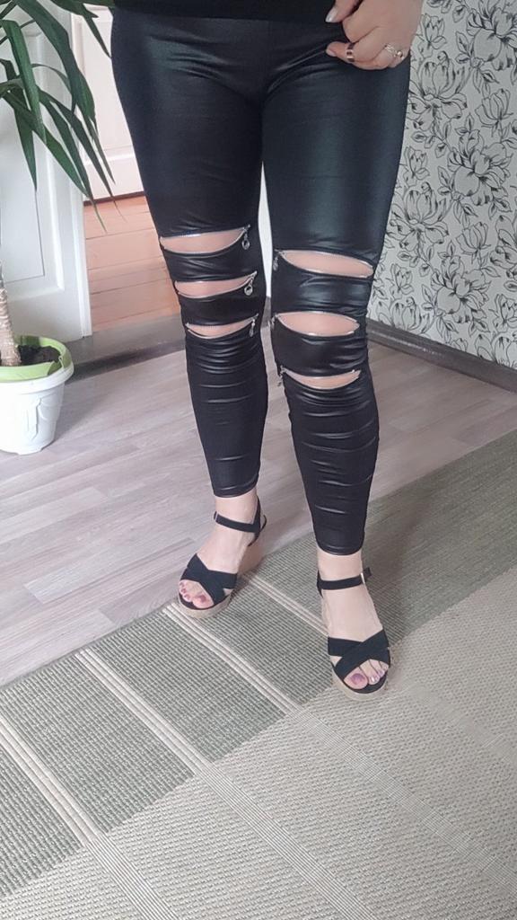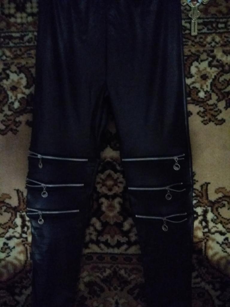 Pentru bani sunt complet multumit. Se potrivesc bine pe talie de 78 și șolduri de 100, se întind. Țesătura este artificială, de parcă ar fi sub piele. Există mici defecte, dar nu critice.