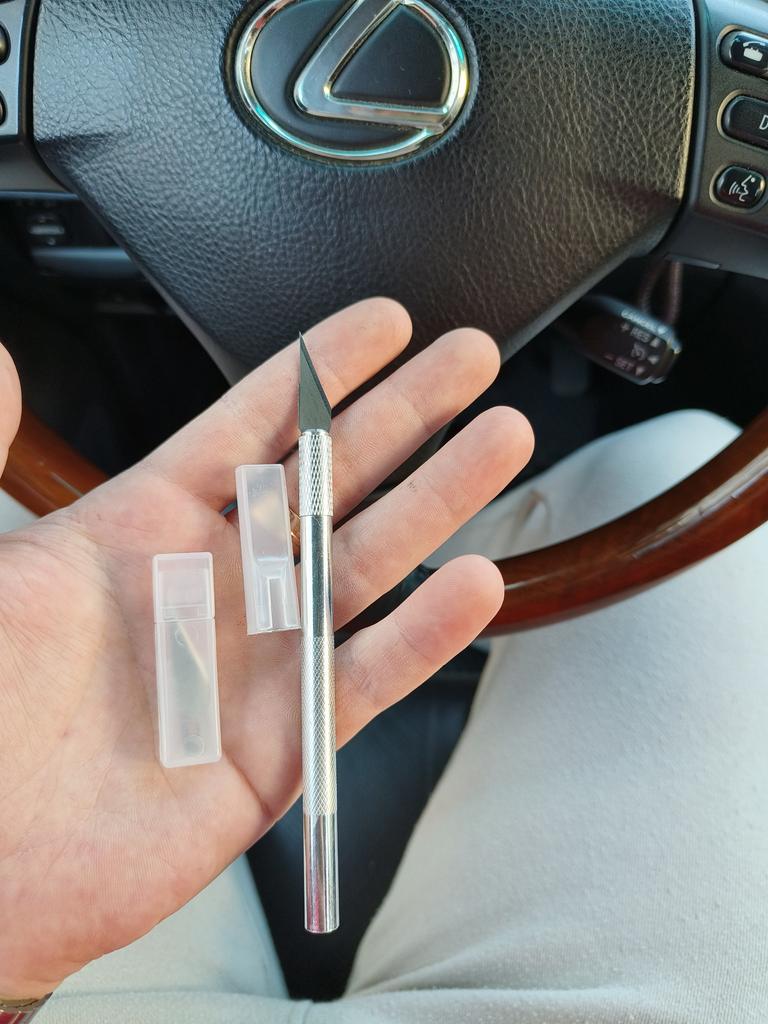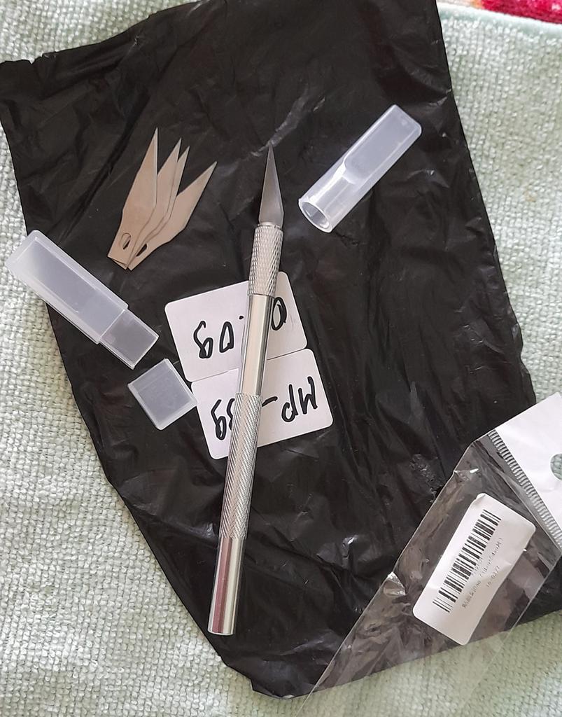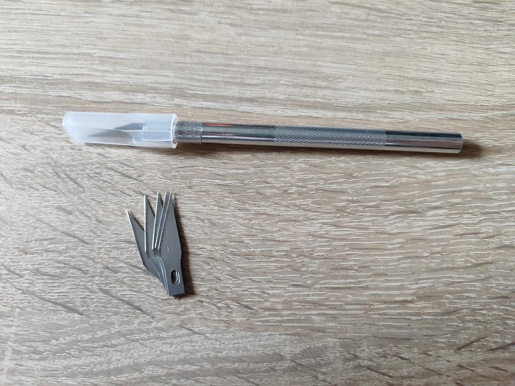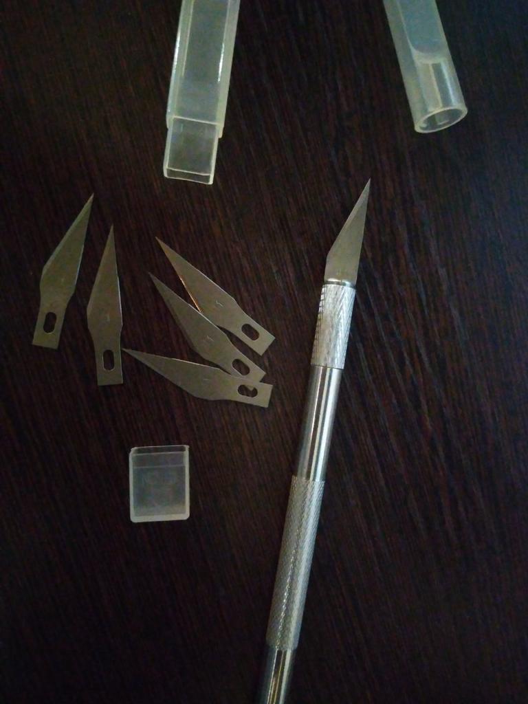 Cuțitul pentru bisturiu este excelent, cu lame de rezervă. Există un capac de protecție pentru lamă. Piesele de schimb sunt, de asemenea, într-o cutie separată.
