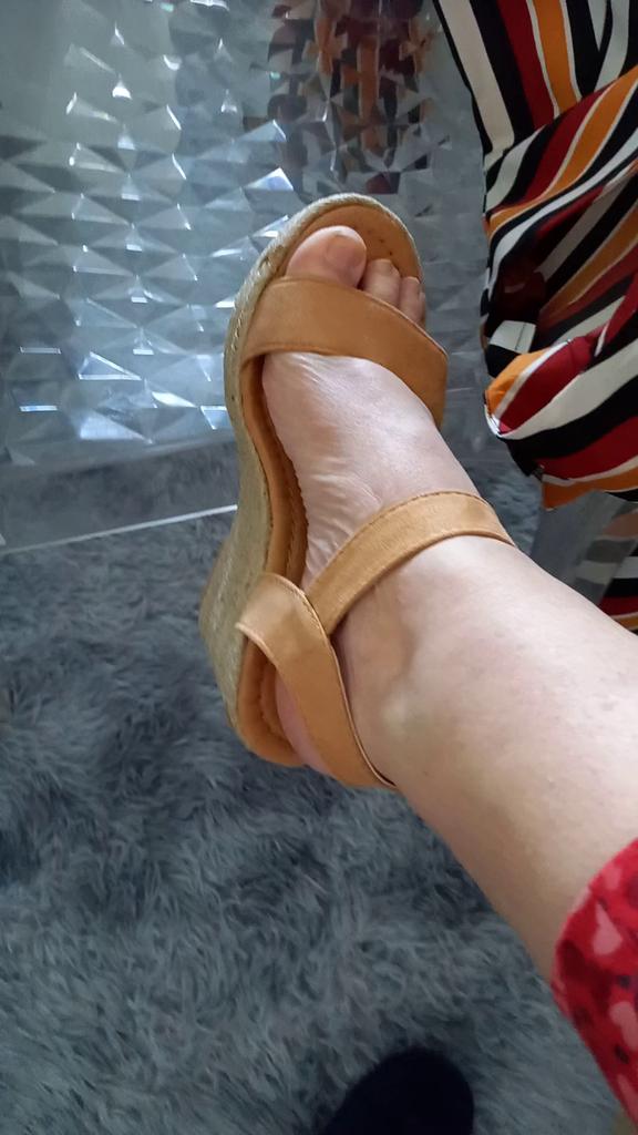 Dacă sunteți în căutarea unor pane înalte și confortabile, vă veți îndrăgosti de acestea. 👡 Au dimensiunea potrivită. Am comandat 37 și este cel pe care îl folosesc. 👡 Talpa este confectionata cu sparta . 👡 Sunteți surprins de materialul catifelat din branț și elemente de fixare! 👡 Nu o să le dau jos toată vara 😂 👡 Îmbunătățește foarte mult silueta datorită penei de 9 cm. 👡Ceea ce as schimba ar fi ca fasiile de spart sa se lipeasca mai bine pentru ca dupa 2 ore de utilizare s-au desprins usor. Pe scurt, sunt recunoscător pentru această achiziție.... Mulțumesc frumos joom!!!🛍️💯