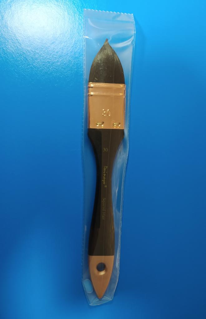 Am primit o pensulă lată și plată pentru acuarele, păr de veveriță. Nu l-am încercat la serviciu, grămada este tare, presată, trebuie înmuiată în apă. Lungimea manerului este de 17 cm, lungimea gramezii este de 3,3 cm.Pachetul a durat 18 zile. O voi încerca la serviciu, voi adăuga o recenzie mai târziu. Recomand vanzatorul.
