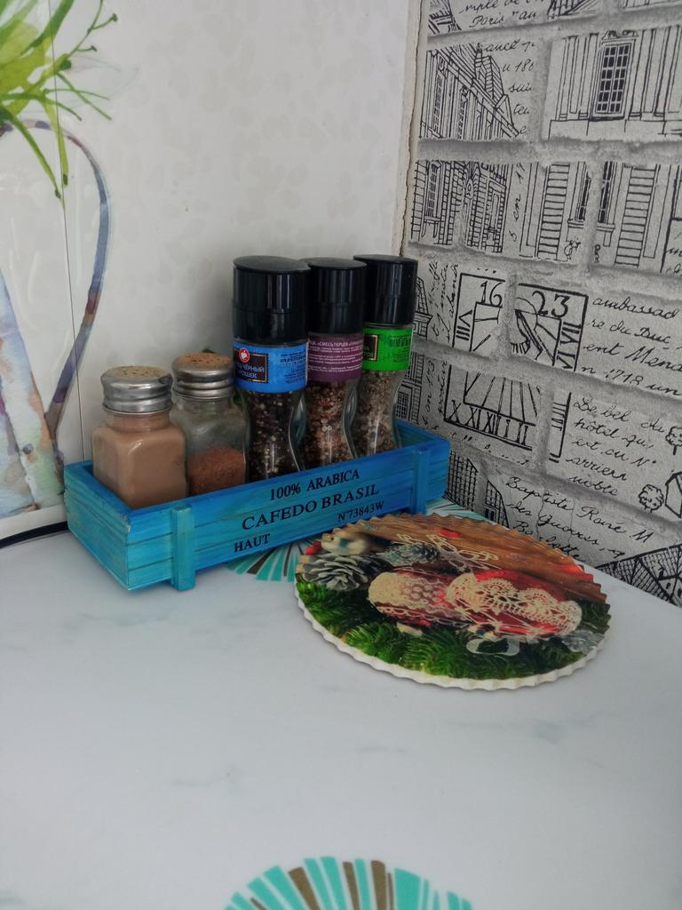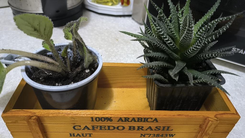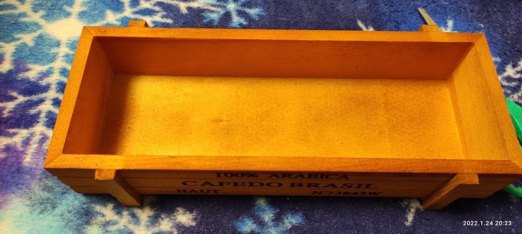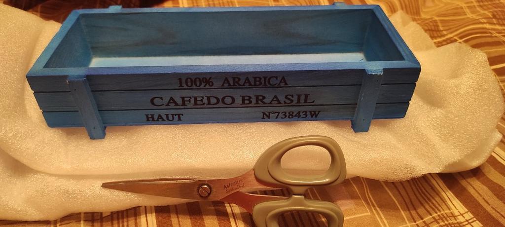 Cutia este in miniatura, in fotografie se potrivesc violetele din cesti de cafea de unica folosinta. L-am luat sub ghivece mici cu suculente și violete. Totul este grozav.