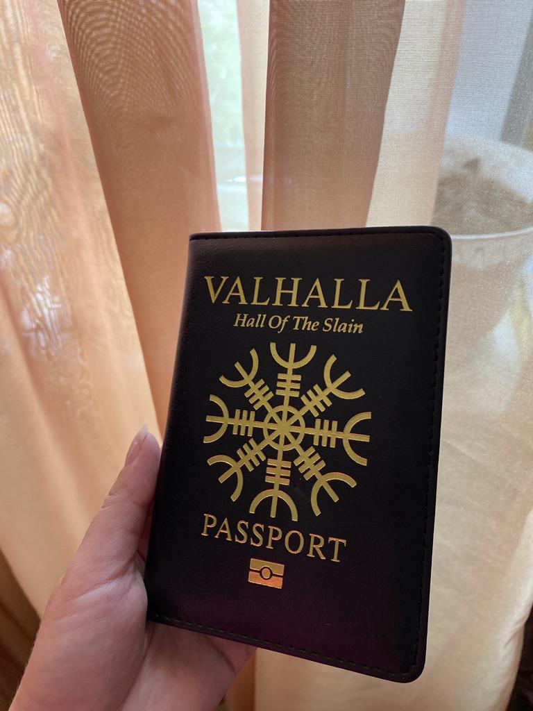 Husă pentru pașaport Valhalla Ediție limitată Povestea mitologică Suport pentru pașaport cu plasture VALhalla Hills