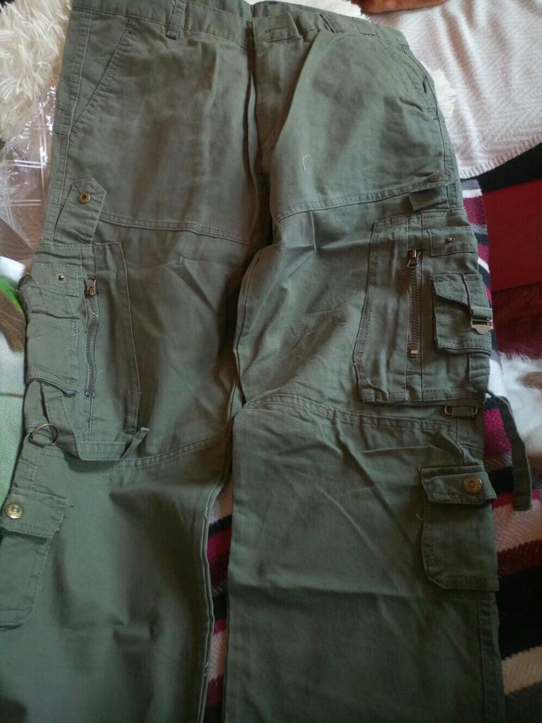 Pantalon cargo militar La vanzator sunt disponibile 4 culori dintre care am ales negru. Acest pantalon i-am cumpărat fratelui meu, îi iubește pantalonii cargo militari pentru că sunt largi și confortabili, perfecti pentru exterior. Aleg marimea 34 si se potrivesc frumos Fratele meu este înalt și lungimea a venit perfect Pantalonul are material din amestec de bumbac/poliester buzunare pe ambele picioare și are o potrivire dreaptă, care se așează ușor sub talie, cu spațiu suplimentar prin scaun și coapsă material respirabil, buzunare încăpătoare plus buzunar cusut în jos cu clape și fermoare și buzunare din spate pentru un contur neted Fermoare și nasturi robuste Au sosit repede si asa cum era de asteptat.