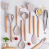 Mâner din lemn Ustensile de bucătărie din silicon Tigaie antiaderente Ustensile de bucătărie din silicon Unelte de gătit Ustensile de bucătărie
