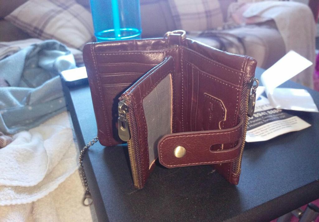 Portofel minunat Keather .spațiu pentru toate cărțile de credit și așa mai departe .2 compartimente pentru cgange și o mulțime de alt spațiu pentru tot felul de gunoiuri pe care le puneți în portofel. Arată foarte frumos și stabil .Livrarea nu a durat mai mult de 3 săptămâni din China în Danemarca.Thumbs up pentru vânzător.