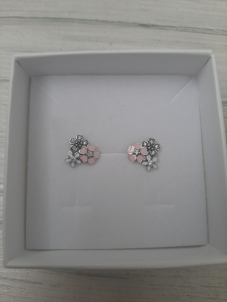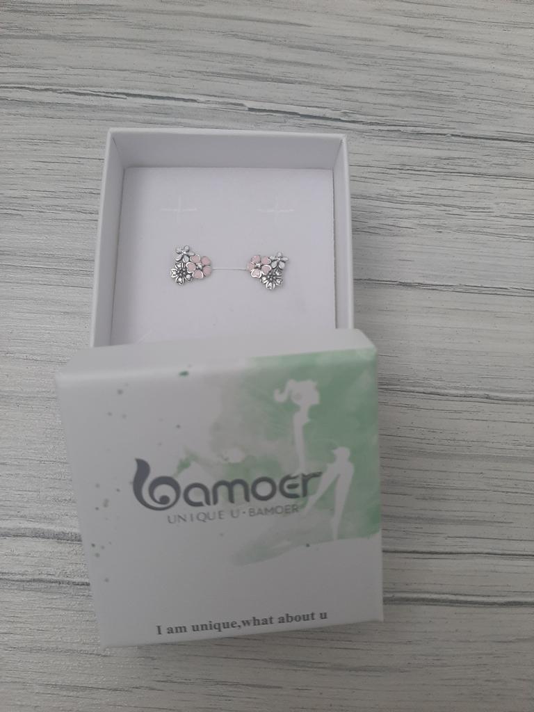 BAMOER Cercei Stud 100% argint 925, roz, margarete, flori de cireș, pentru femei Sterling