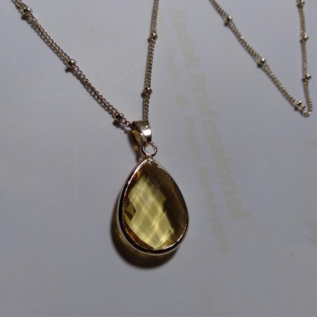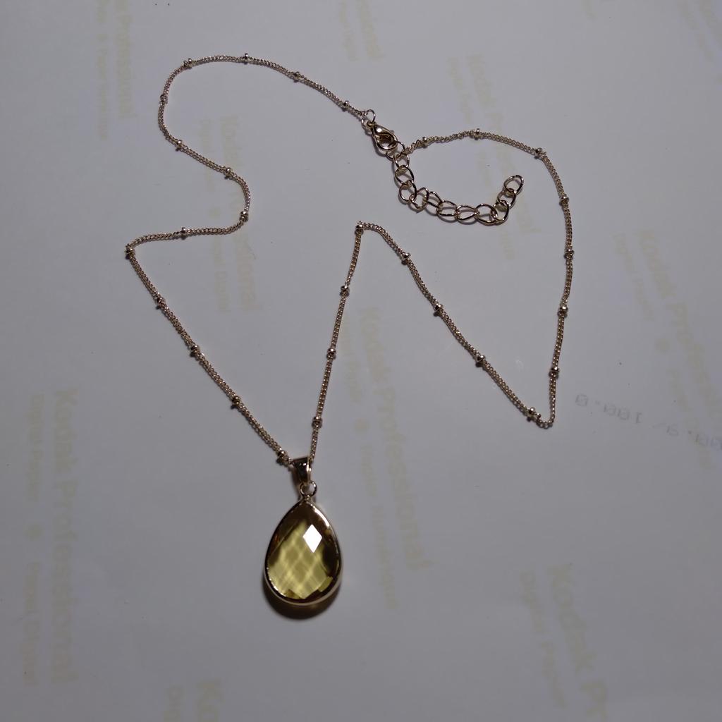 ~ Colier delicat~ Comanda a sosit bine ambalată și nedeteriorată în mai puțin de o lună. Colierul arată exact ca în pozele vânzătorului. Colierul în sine este foarte delicat și de culoare aurie, decorat cu mărgele mici. Pandantivul este alcătuit dintr-o piatră verde transparentă așezată într-un cadru de culoare aurie. Piatra poate fi văzută din ambele părți. În general, designul este foarte subtil și totuși frumos. Puteți deschide și închide lanțul cu un cârlig, care, din păcate, este rupt pe acest lanț. Nu poate fi folosit corect. Vanzatorul ofera alte culori, asa ca am comandat alta in roz. Cu toate acestea, sunt mulțumit de achiziția mea și recomand lanțul, deoarece celălalt articol al meu a fost perfect.