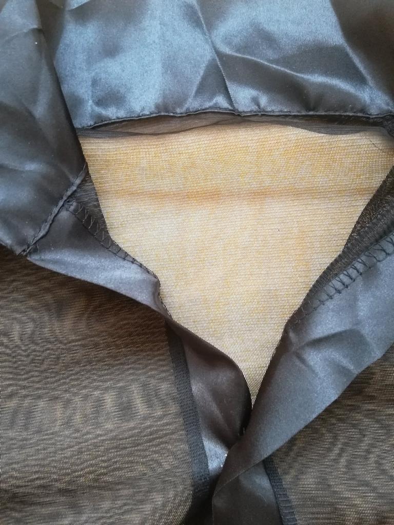 Calitatea nu este rea, plasă subțire, transparentă. Totul este așa cum este descris. Mărimea XL pare să se potrivească cu 50.