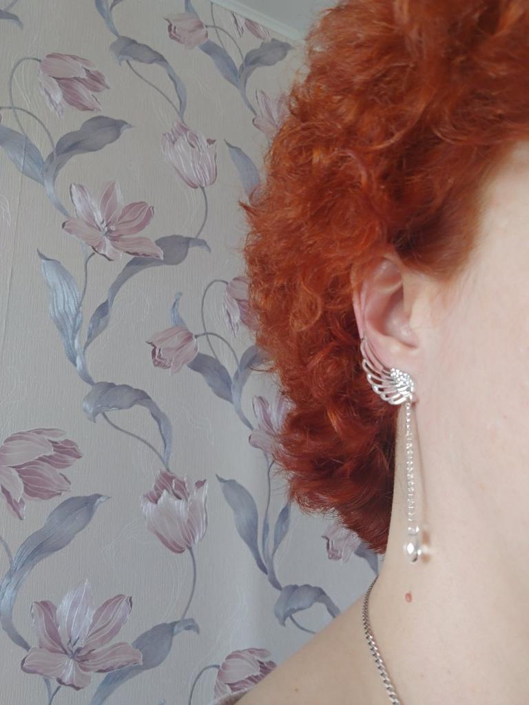 Cercei frumoși, o aripă a zburat constant din atașamentul superior, cred că datorită particularității formei urechii, am îndoit clema într-un unghi diferit - până acum țin.