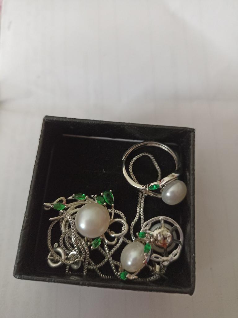 LSOOYH Perle de apă dulce de modă verde frunze de cristal coliere cercei inel pentru femei seturi de bijuterii