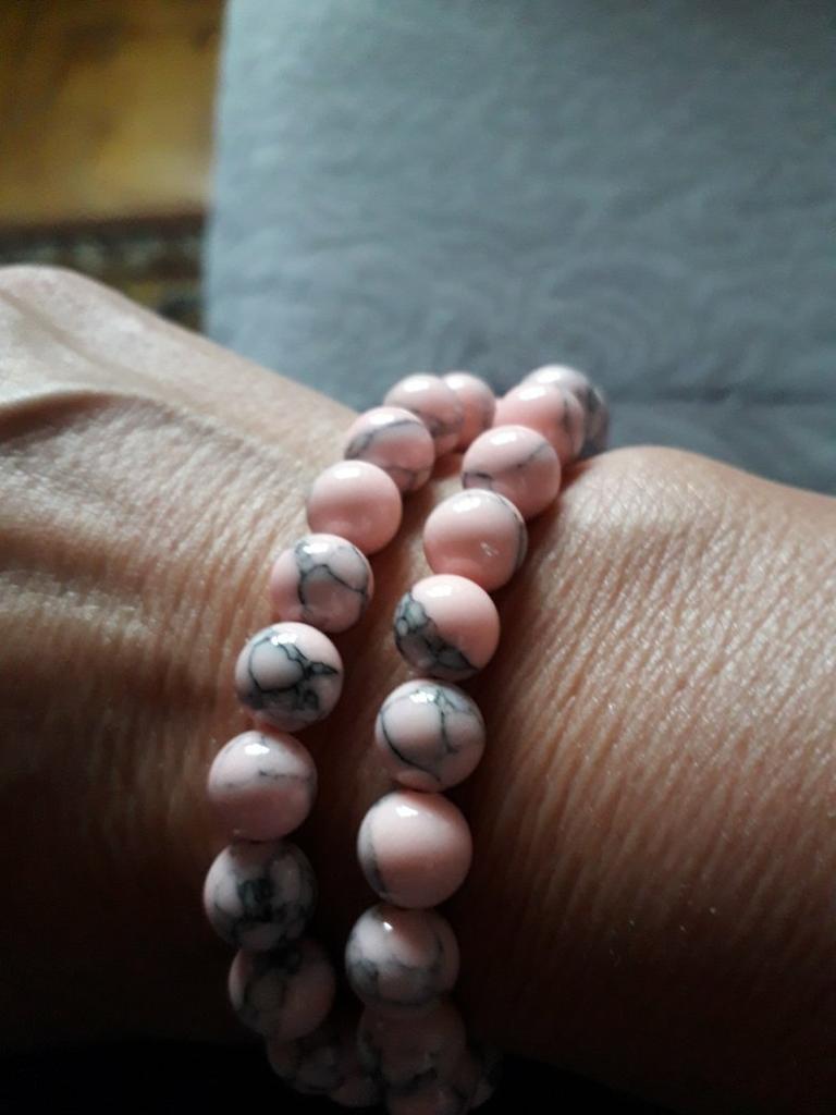 Aproximativ 45 de margele turcoaz roz cu marmorare gri. Arăți foarte bine. 😘🦋