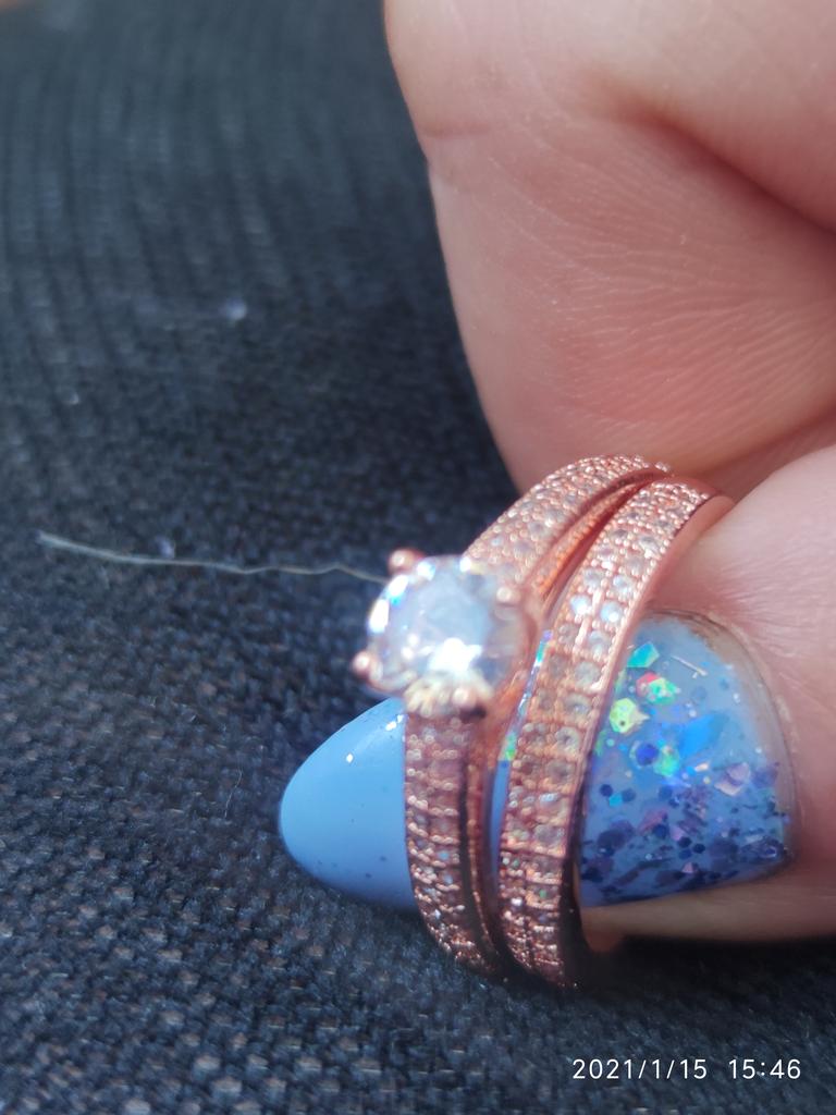 Câteva pietre au căzut deja dintr-un inel. Pietrele de pe inel sunt albe și nu negre, așa cum se arată (articol greșit!!!)