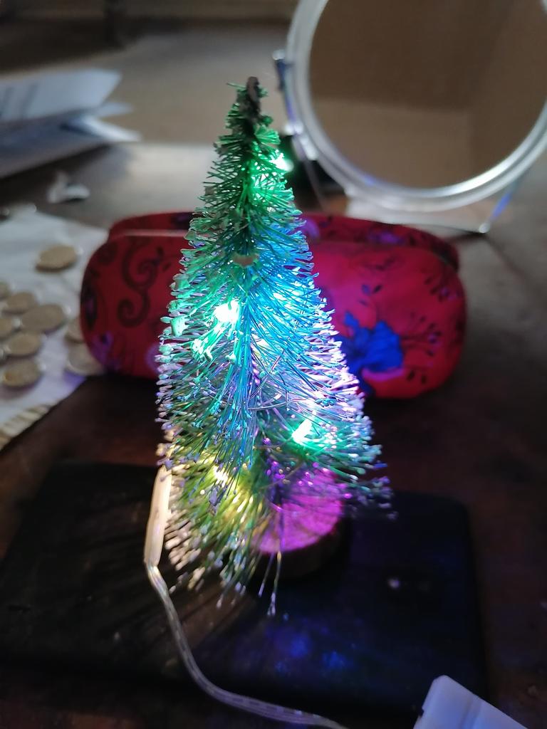 Micul copac luminos prea drăguț, funcționează foarte bine. De manevrat ușor pentru asamblare, ghirlandă de lumini destul de fragilă. Rezultatul final este grozav, în ciuda sosirii coletului în stare destul de proastă, maltratare sau copacul meu a venit dintr-un loc în care a fost victima unei furtuni 😄 Un decor foarte frumos ☺️