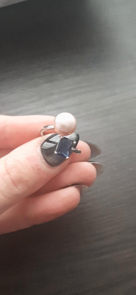 LSOOYH Inele de perle naturale de apă dulce pentru femei, inel de cristal albastru Boho, bijuterii de perle